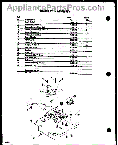 Parts for Amana DDO-862: 02 - Door Latch Assy Parts