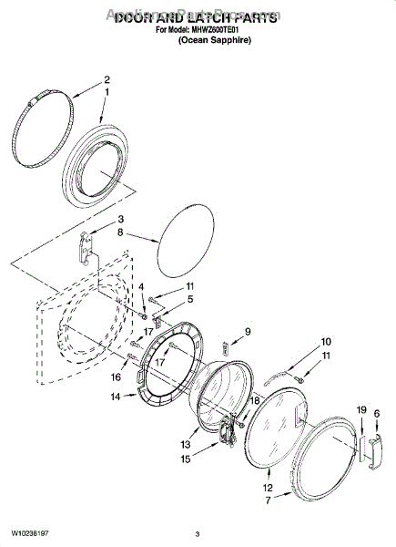 Parts for Maytag MHWZ600TE01: 02 - Door And Latch Parts