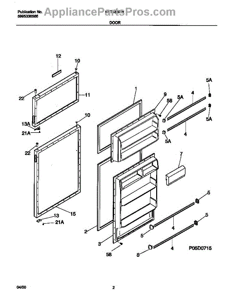 The Door Shelf Support is an OEM part for Frigidaire refrigerators, designed to hold and support the shelves on the inside of the refrigerator door. This part ensures that door shelves are securely mounted, providing stable storage for bottles, condiments, and other items.