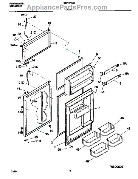 Replacement door bin for refrigerator inner door storage. Installs on the door interior to hold bottles, jars, and small items. Needed when cracked or broken.
