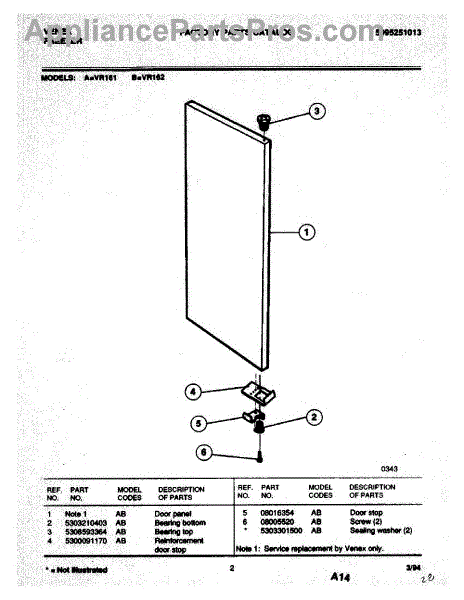Parts for Frigidaire VR162: 02 - Door Parts
