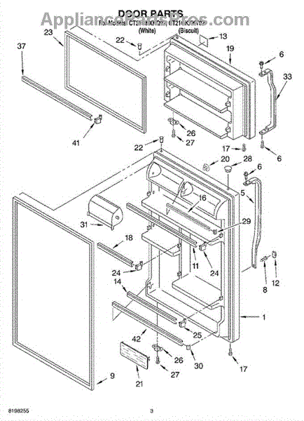 Parts for Whirlpool CT21GKXKT02: 02 - Door Parts