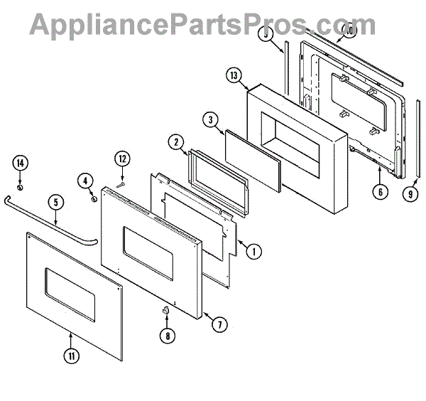 This spacer fits between the inner and outer oven door glass panels to help maintain the correct gap and alignment for safe operation. It replaces a missing or damaged spacer to restore proper door assembly and appearance. What it does: