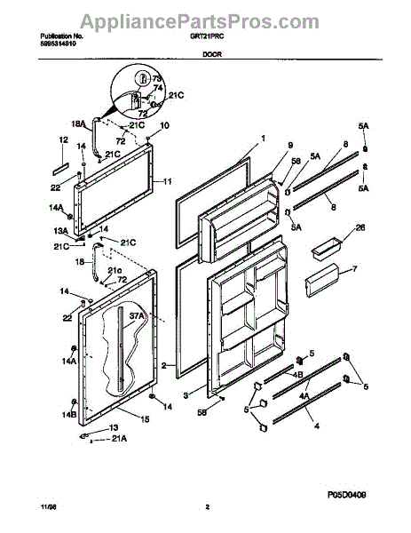 The Door Shelf Support is an OEM part for Frigidaire refrigerators, designed to hold and support the shelves on the inside of the refrigerator door. This part ensures that door shelves are securely mounted, providing stable storage for bottles, condiments, and other items.