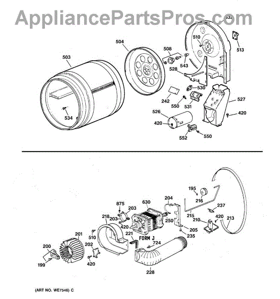 The Blower Wheel is an OEM replacement part for GE dryers. It has a role in the air circulation within the dryer, aiding in the even and efficient drying of clothes. The blower wheel, connected to the motor, helps in expelling the moist air out of the dryer through the exhaust vent during the drying cycle. Causes of a malfunctioning blower wheel are typically wear and tear from regular use, the accumulation of lint or debris, or damage to the wheel’s fins or central hub, which can impact its rotation and air circulation capability. Symptoms of a bad Blower Wheel include: