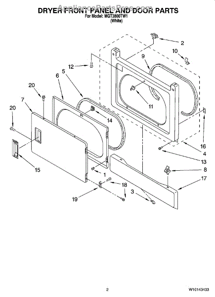 Parts for Maytag MGT3800TW1: 02 - Dryer Front Panel And Door Parts