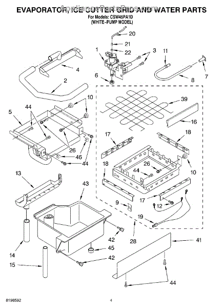 Parts for Whirlpool CSW45PA1D: 02 - Evaporator Ice Cutter Grid And Water Parts