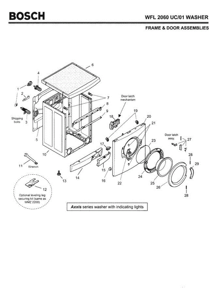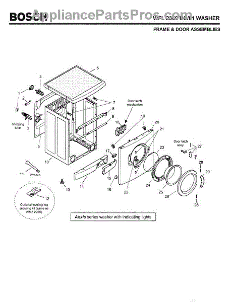 Secures leveling legs on front-load washers. Replace if kit is missing, damaged, or legs have become loose. Includes hardware for proper installation.