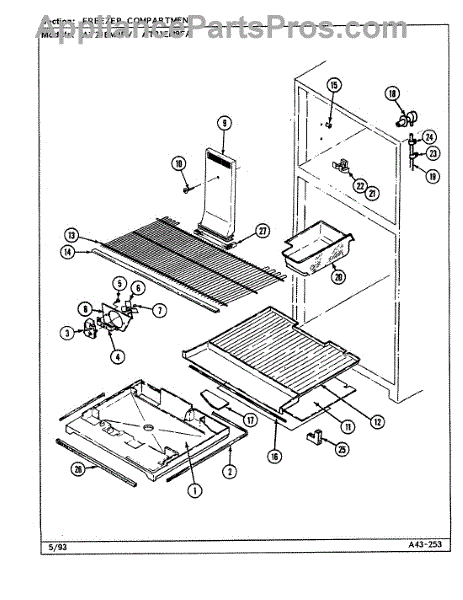 This factory screw secures appliance components to their mounting points. Replace missing, worn, or stripped hardware to restore a tight fit, proper alignment, and quieter operation across the affected assembly.