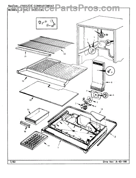 Parts for Admiral NT21L9 / BA75C: 02 - Freezer Compartment Parts