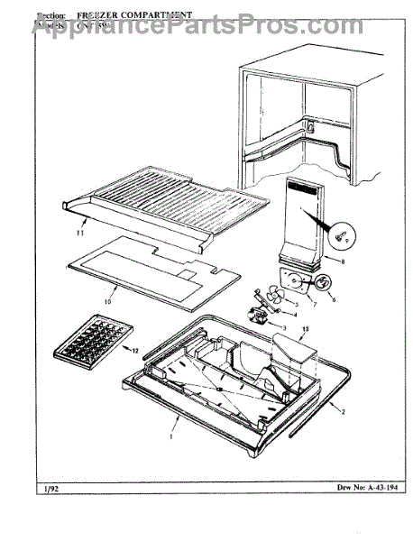 Parts for Crosley CNT15W4A / BC11C: 02 - Freezer Compartment Parts