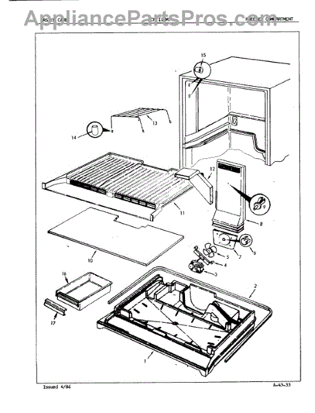 This factory screw secures appliance components to their mounting points. Replace missing, worn, or stripped hardware to restore a tight fit, proper alignment, and quieter operation across the affected assembly.