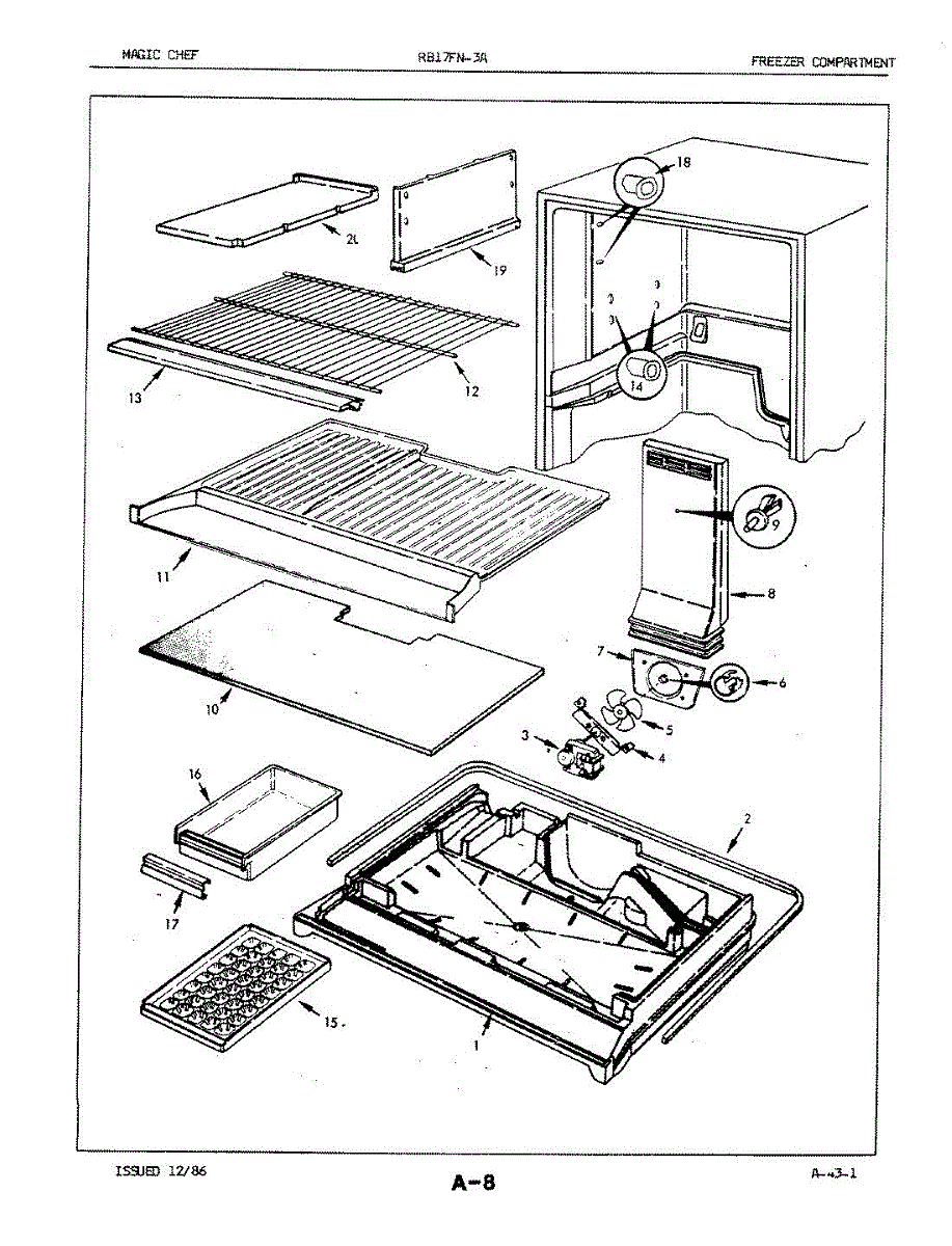Parts for Magic Chef RB17FA-3A / 7C16A: 02 - Freezer Compartment Parts