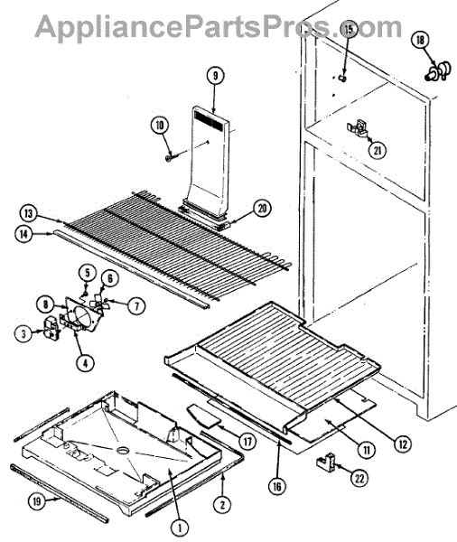 This factory screw secures appliance components to their mounting points. Replace missing, worn, or stripped hardware to restore a tight fit, proper alignment, and quieter operation across the affected assembly.
