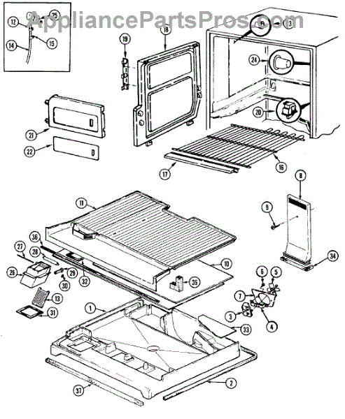 This factory screw secures appliance components to their mounting points. Replace missing, worn, or stripped hardware to restore a tight fit, proper alignment, and quieter operation across the affected assembly.