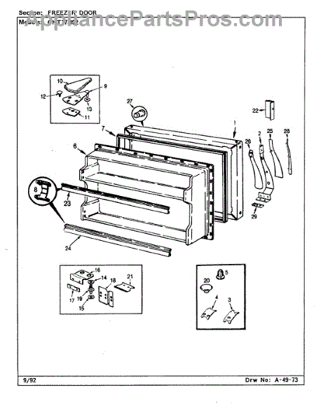 Parts for Admiral GNT17M92 / CF28A: 02 - Freezer Door Parts