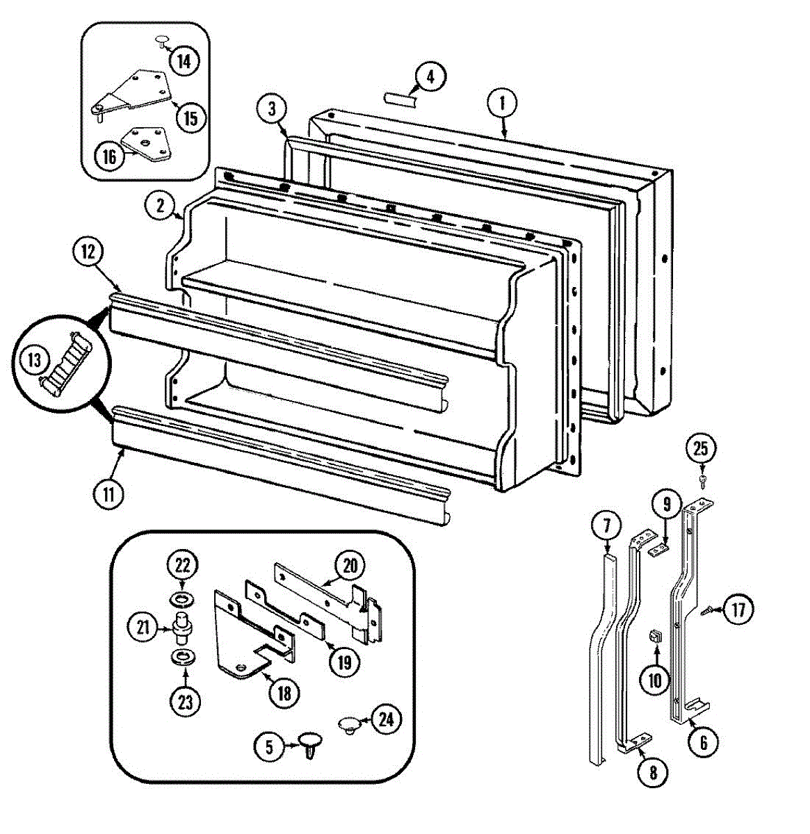This handle frame is the trim piece that mounts around a door handle to restore the appliance's finished appearance and cover the handle's fasteners. It replaces worn or damaged trim for a clean, secure handle look. What it does: