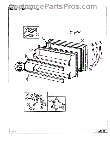 Parts for Crosley CT19X7A / DE65A: 02 - Freezer Door Parts