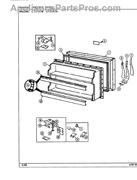 Parts for Crosley CT21X7A / DD68A: 02 - Freezer Door Parts