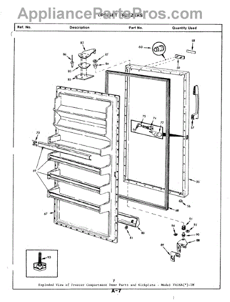 Parts for Magic Chef FA16AN-1M / 9Q55A: 02 - Freezer Door Parts