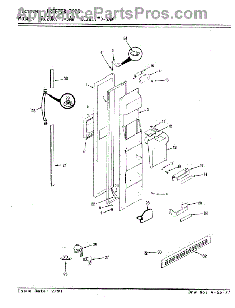 Parts for Magic Chef RC20KA-3AW / AS09A: 02 - Freezer Door Parts