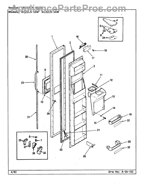 Parts for Magic Chef RC22LA-3AW / CS32A: 02 - Freezer Door Parts