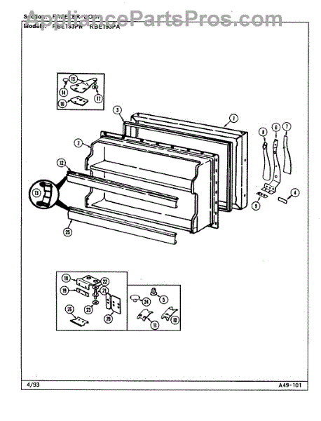 Parts for Maytag RBE193PA / DG63A: 02 - Freezer Door Parts