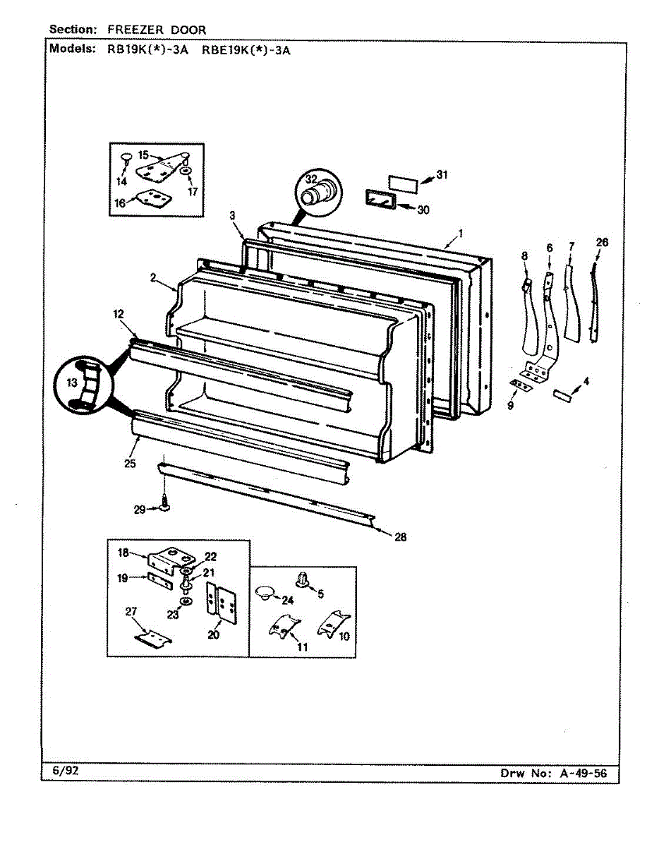 Parts for Maytag RBE19KA-3A / CG61A: 02 - Freezer Door Parts