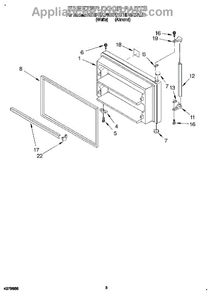 Parts for Kitchenaid KTHD18KDWH01: 02 - Freezer Door Parts