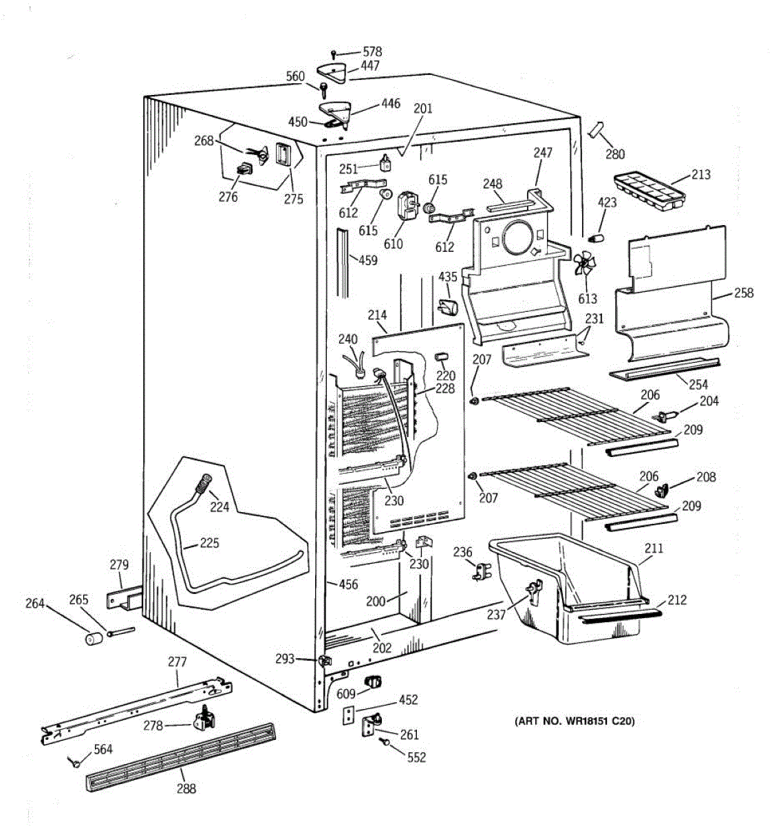 Parts for Ge CSK20GABAAD: 02 - Freezer Section Parts
