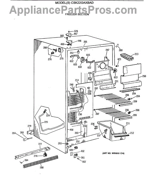 Parts for Ge CSK22GAXBAD: 02 - Freezer Section Parts