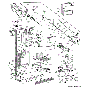 This OEM Replacement Part is an ice container assembly for GE side-by-side refrigerators from 1998 models and newer with 24 to 27 cubic feet capacity. The assembly includes a 12 3/8” wide x 12 3/8” long x 14 5/8” tall ice bucket with an integrated auger to rotate and move ice into the dispenser chute. The auger within the assembly helps move the ice cubes forward, enabling easy access and dispensing.