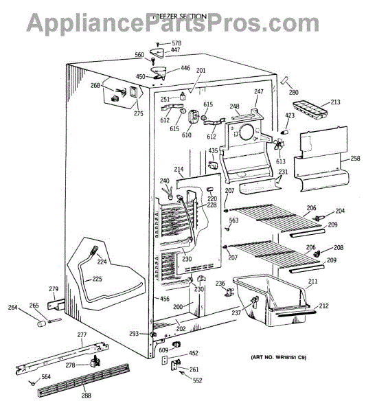 Parts for Ge CSX20KAXAAD: 02 - Freezer Section Parts