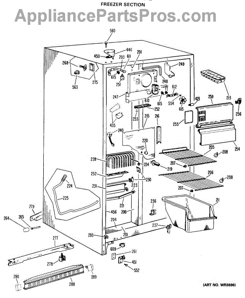 Parts for Ge CSX20LJE: 02 - Freezer Section Parts