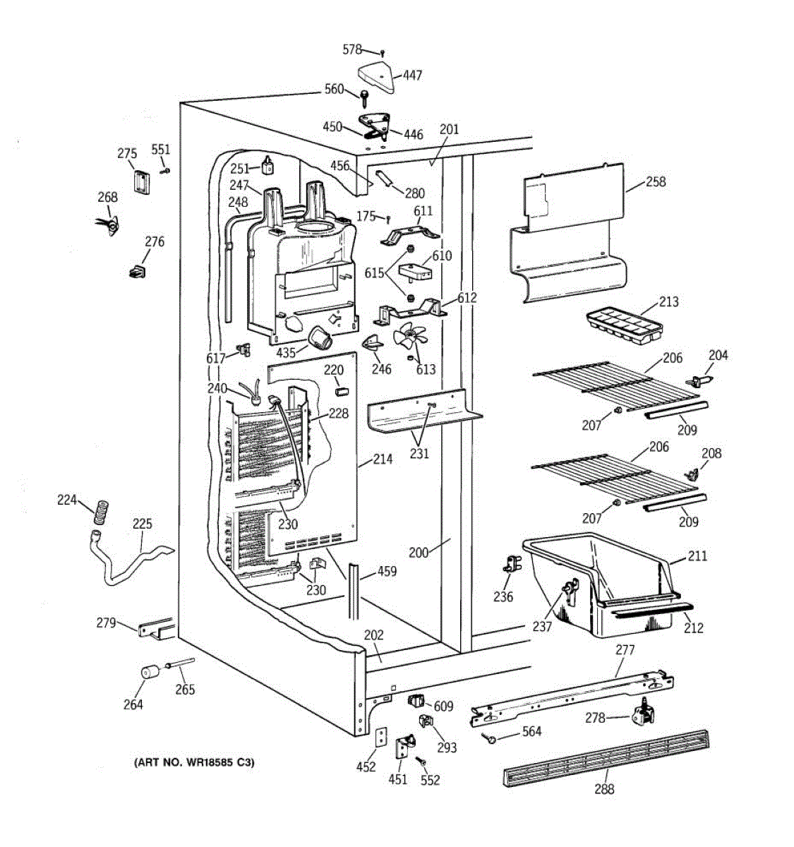 Parts for Ge CSX22GABCAA: 02 - Freezer Section Parts
