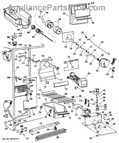This OEM Replacement Part is an ice container assembly for GE side-by-side refrigerators from 1998 models and newer with 24 to 27 cubic feet capacity. The assembly includes a 12 3/8” wide x 12 3/8” long x 14 5/8” tall ice bucket with an integrated auger to rotate and move ice into the dispenser chute. The auger within the assembly helps move the ice cubes forward, enabling easy access and dispensing.