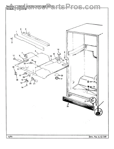 Sheet metal pan head screw secures panels, brackets, and components to appliance cabinets. Replace missing, stripped, or corroded screws to restore fit.
