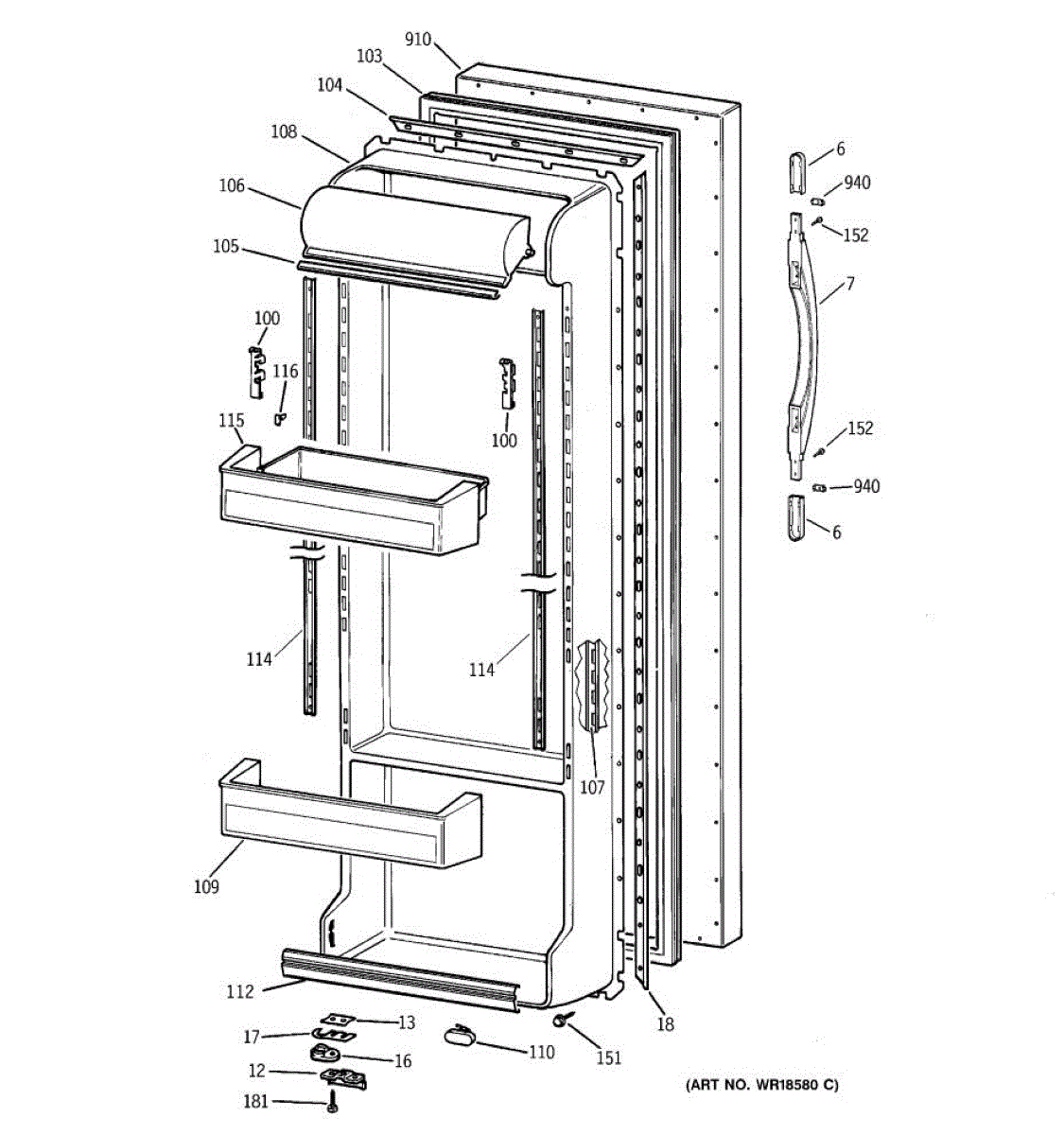 The Door Handle is an OEM part for GE refrigerators. This part provides a secure and comfortable grip for opening and closing the refrigerator door.