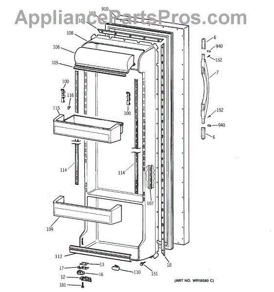 The Door Handle is an OEM part for GE refrigerators. This part provides a secure and comfortable grip for opening and closing the refrigerator door.