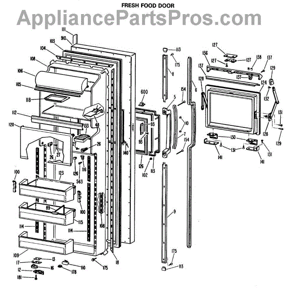 Parts for Ge CSX27CLN: 02 - Fresh Food Door Parts