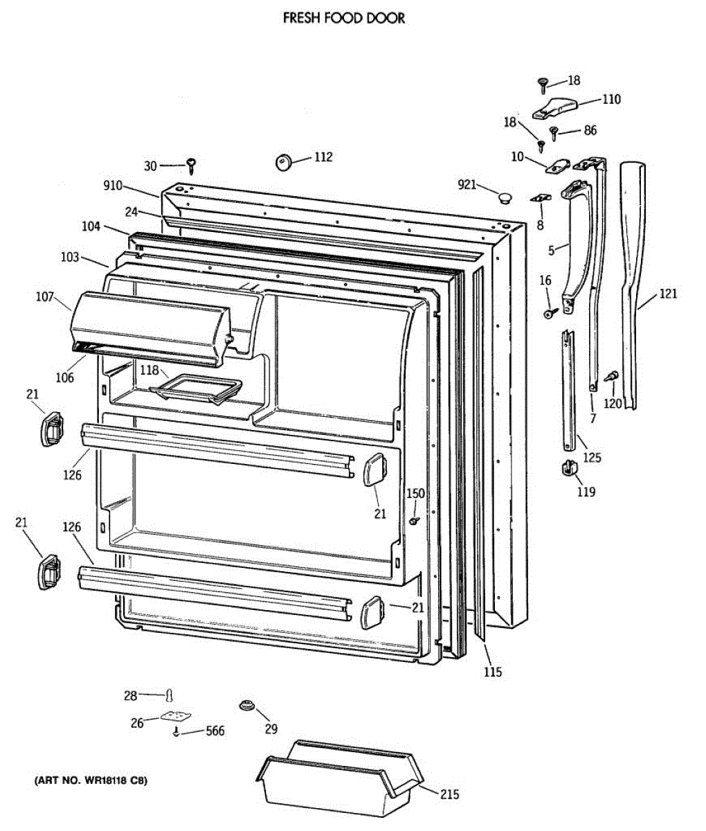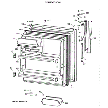 Parts for Ge CTE18GATNRWH: 02 - Fresh Food Door Parts