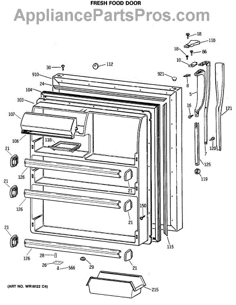 Parts for Ge CTE21GATMRWH: 02 - Fresh Food Door Parts