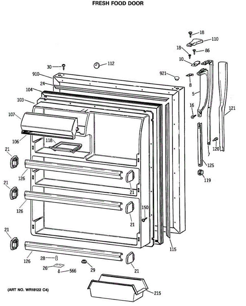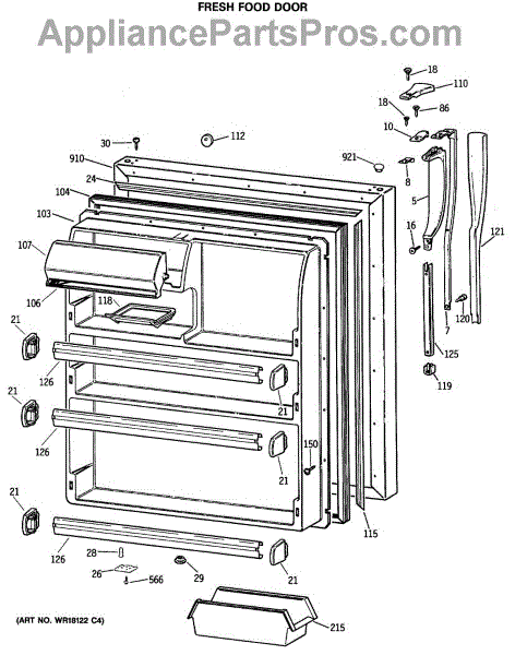 Parts for Ge CTE24GATHRWH: 02 - Fresh Food Door Parts