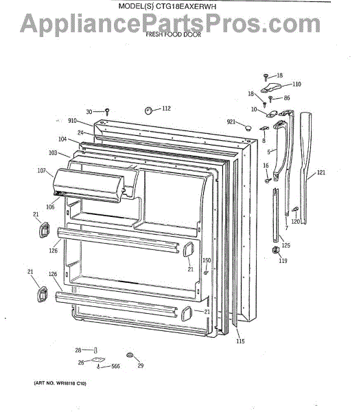 Parts for Ge CTG18EAXERWH: 02 - Fresh Food Door Parts