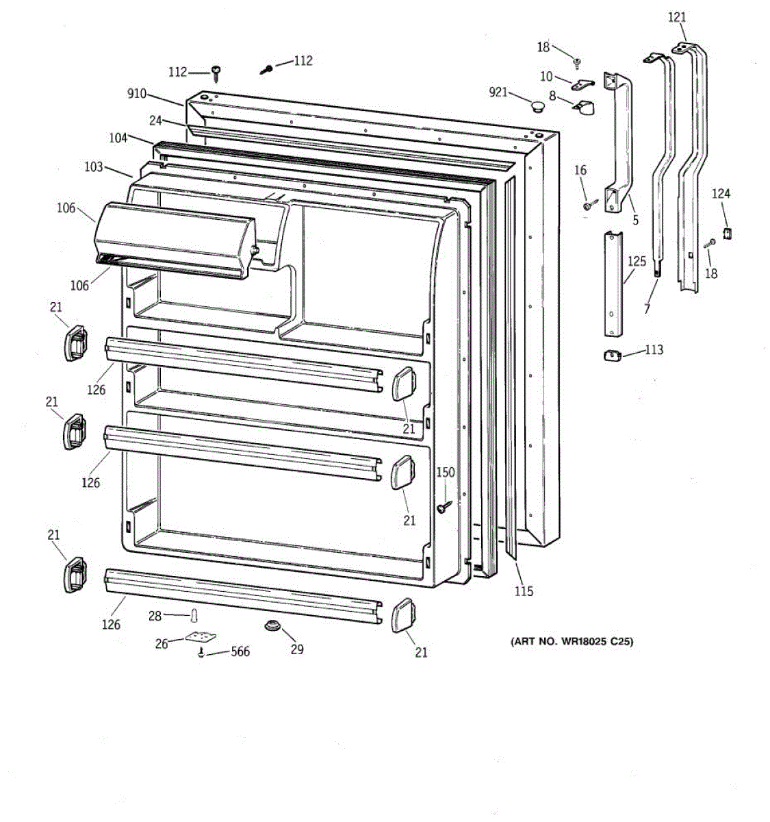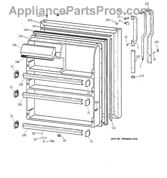 Parts for Ge CTG18GABURWW: 02 - Fresh Food Door Parts