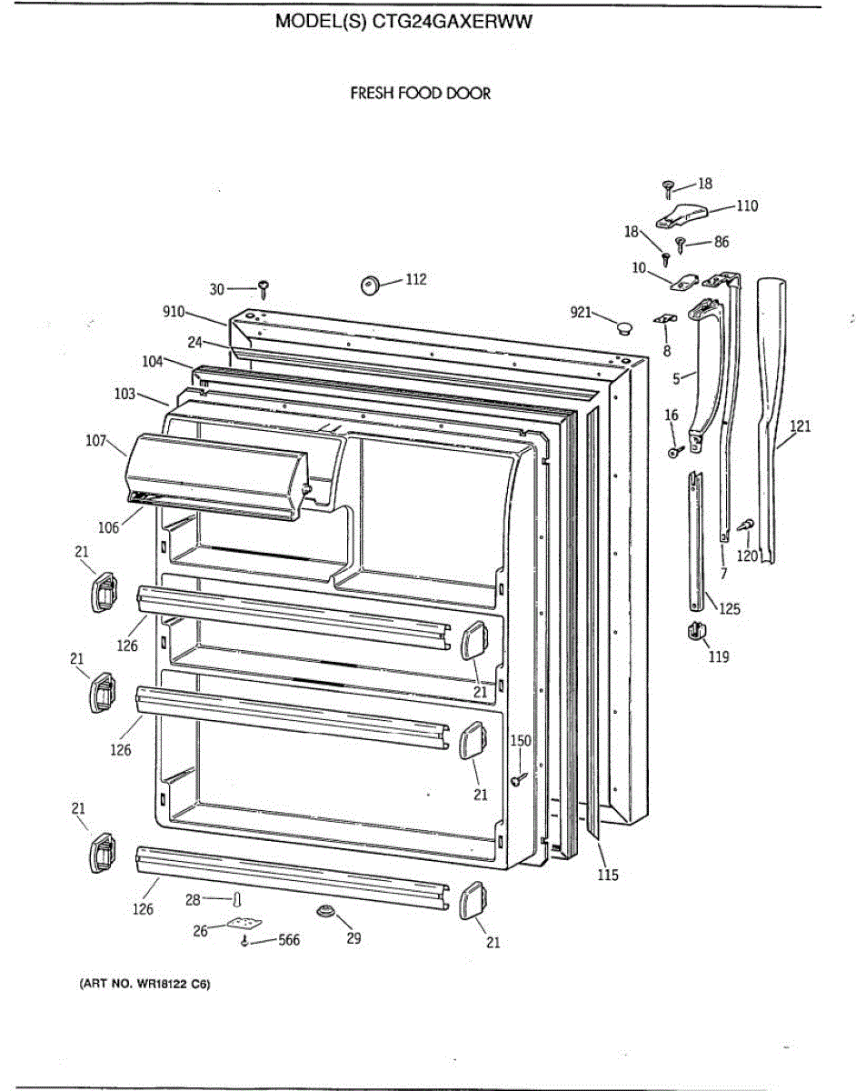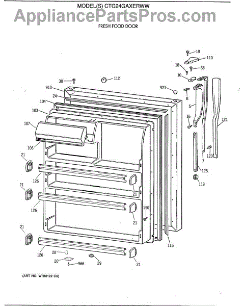 Parts for Ge CTG24GAXERWW: 02 - Fresh Food Door Parts
