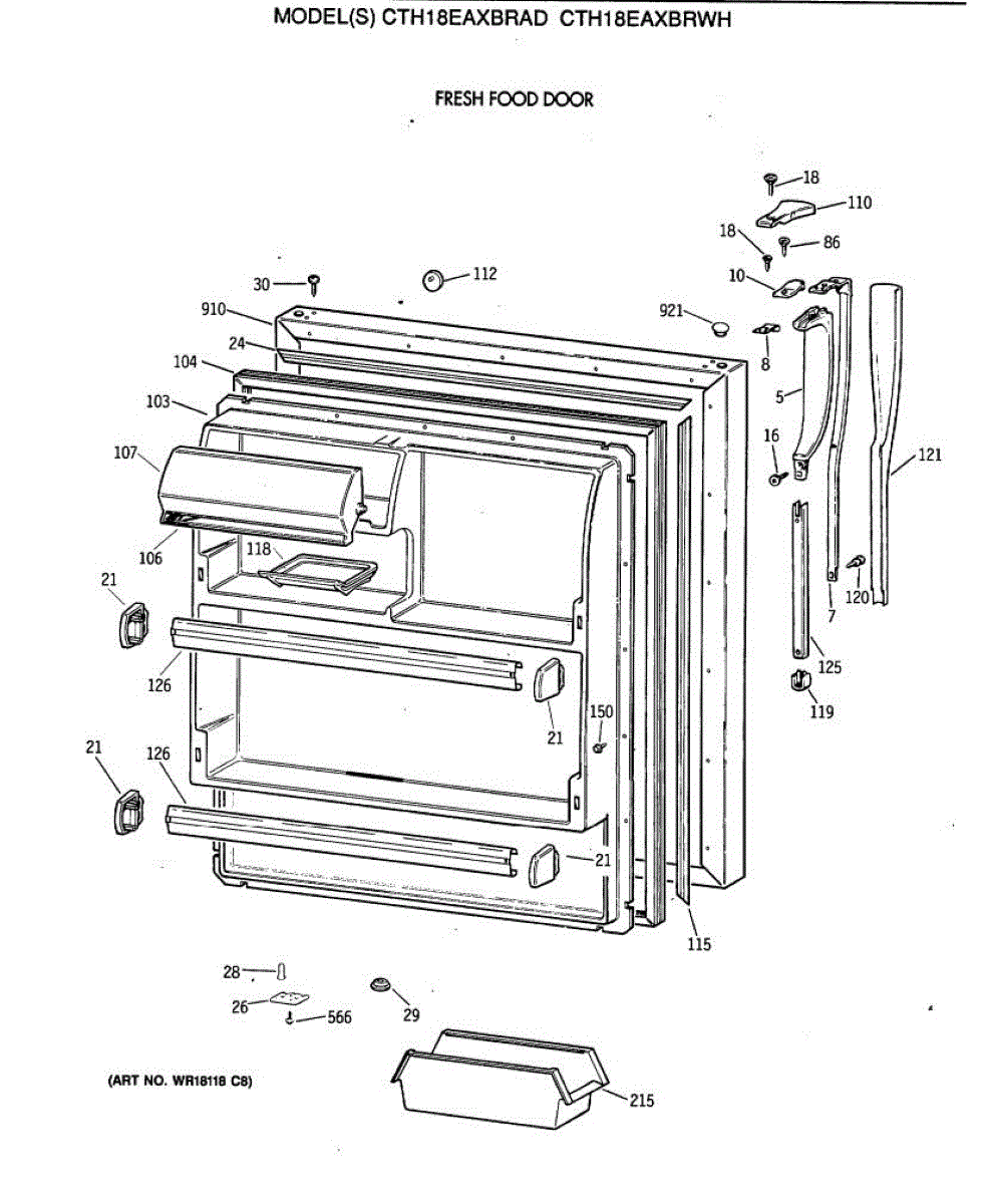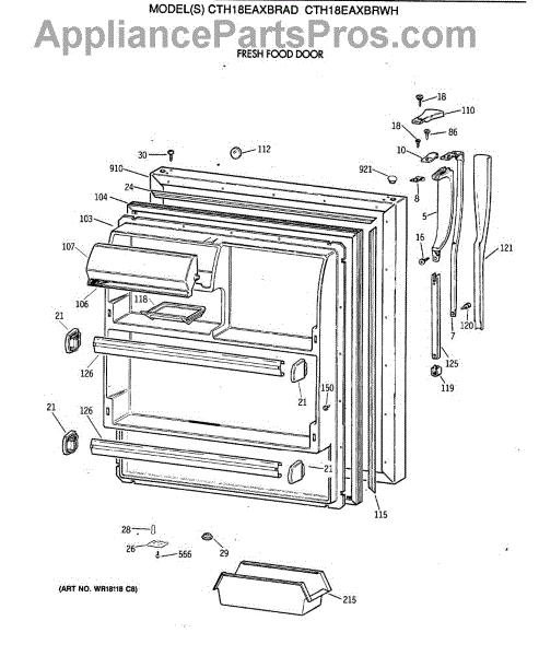 Parts for Ge CTH18EAXBRWH: 02 - Fresh Food Door Parts