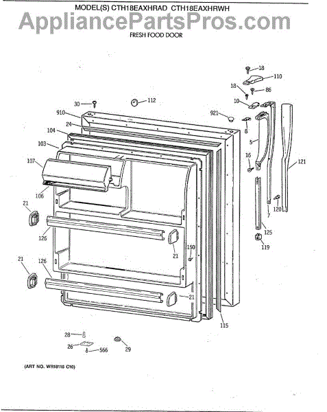 Parts for Ge CTH18EAXHRWH: 02 - Fresh Food Door Parts