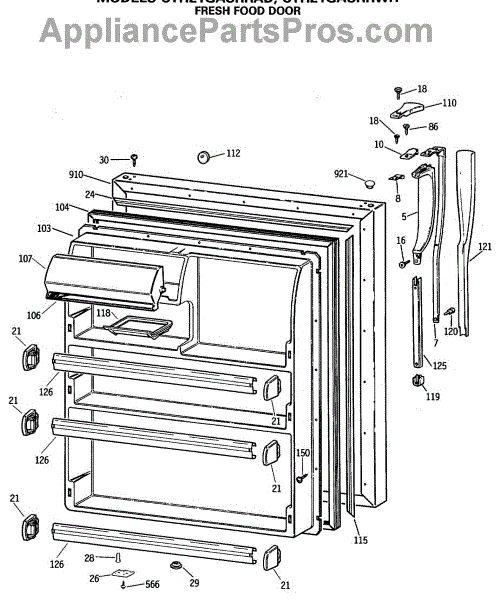 Seals your refrigerator's fresh food door to maintain temperature and prevent air leaks. Replace if you notice condensation, mold, or warm spots inside.