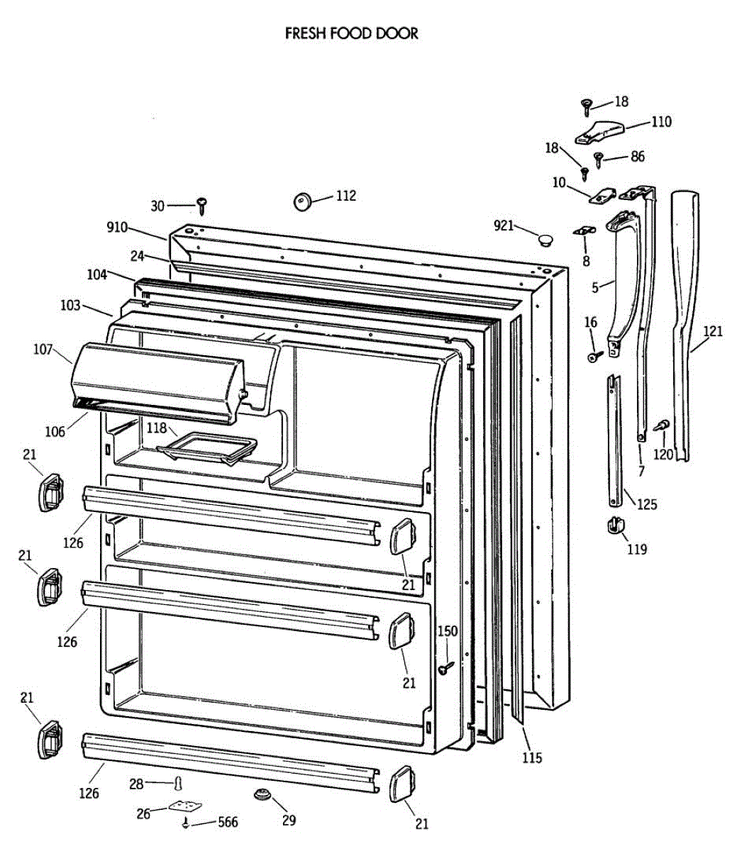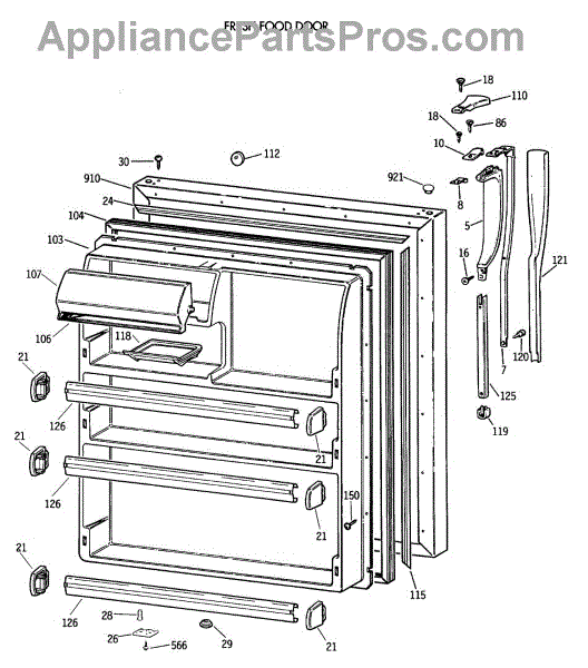 Parts for Ge CTH21GATNRWH: 02 - Fresh Food Door Parts